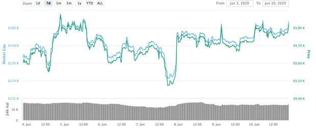 Динаміка курсу біткойна за останні сім днів / Графік Coinmarketcap.com