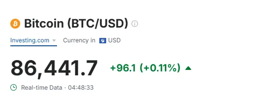 Дані investing.com показують, що наразі біткойн дещо відновився після падіння. Однак ця валюта має меншу ціну ніж була зафіксована – 86 441,7 доларів зам монету.