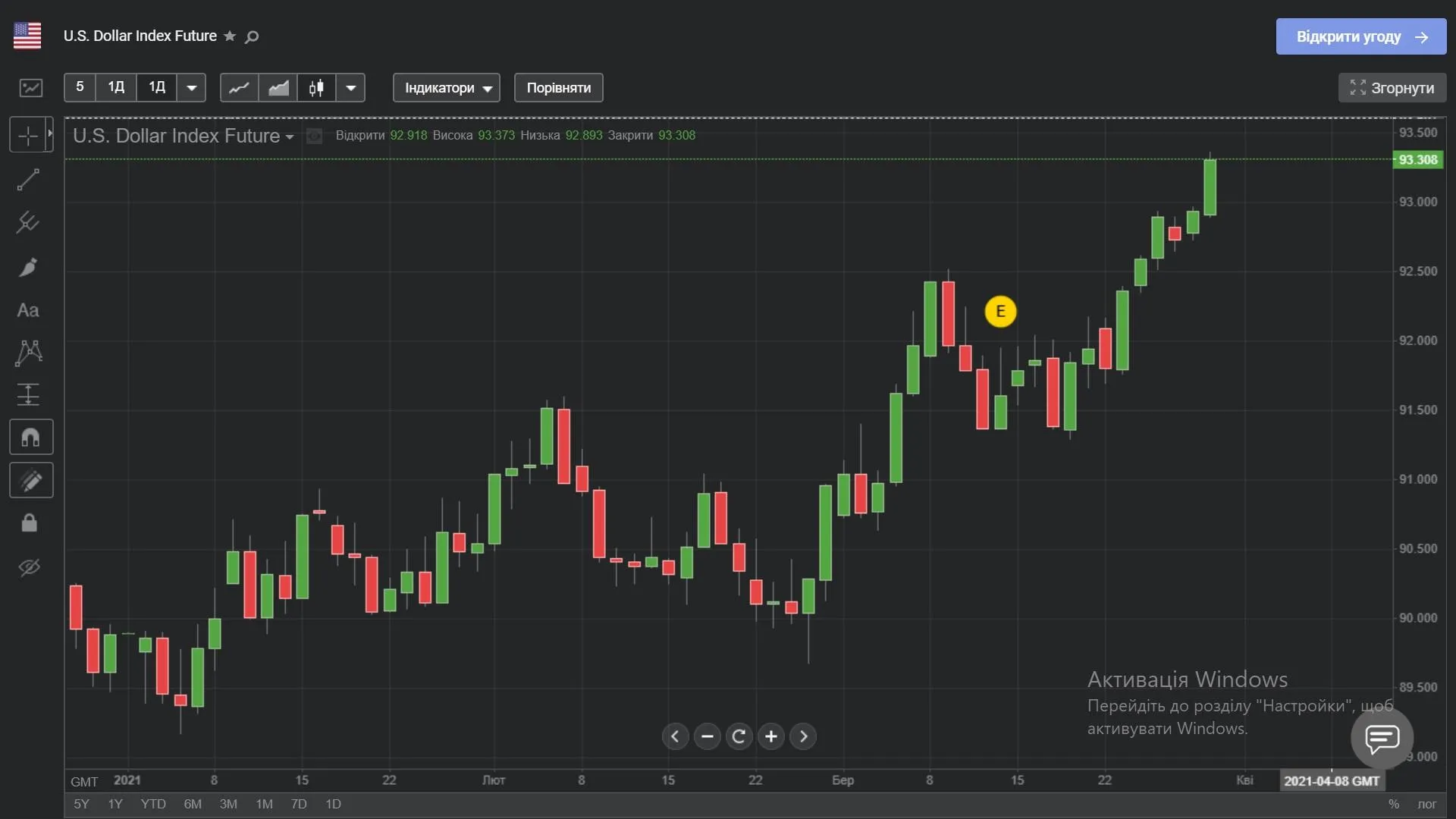 Індекс долара у 2021 році / Інфографіка tradingview.com