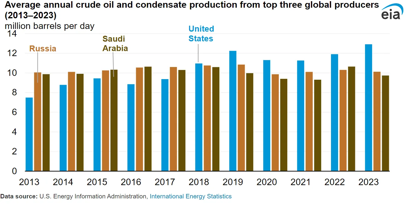 США добывают наибольшие объемы нефти в мире / Скриншот из EIA