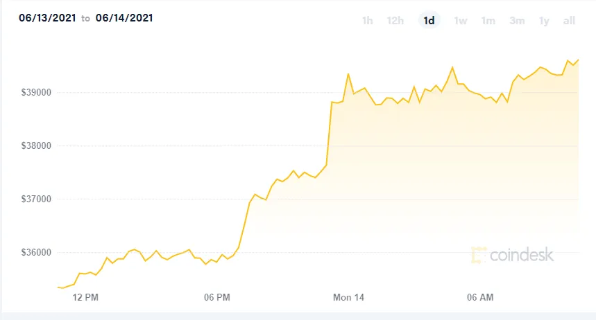 Пости Маска у твіттер часто стають причиною змін на ринку криптовалюти. Після його останньої заяви вартість біткойна зросла на 10%. За даними CoinDesk, актуальна ціна криптовалюти становить майже 39 тисяч доларів за монету.